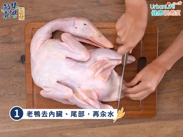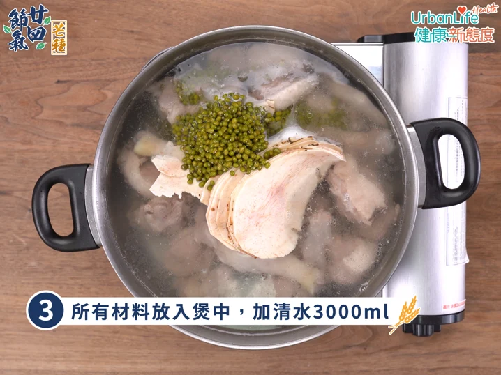 做法 1/ 老鴨去內臟、尾部,再汆水 2/ 綠豆、土茯苓浸泡1小時 3/ 所有材料放入煲中,加清水3000ml 4/ 大火煮開後,轉慢火煲3小時